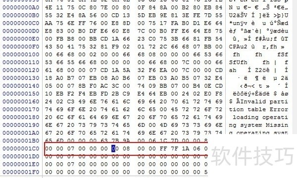 1、 打开winhex,我们看下起始分区表信息,由于教程原因,我们把分区表里面的数据全部填充为0。恢复原有的3个分区,只要把里面的数据填充正确即可。