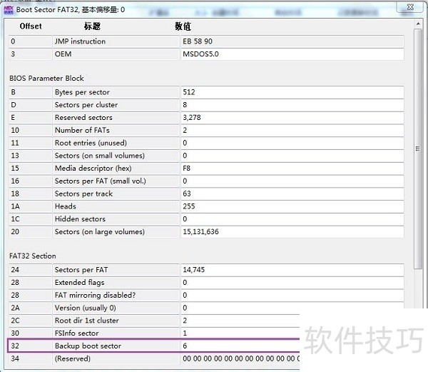 1、 分析正常的FAT32的文件系统的DBR结构。打开引导扇区模版。