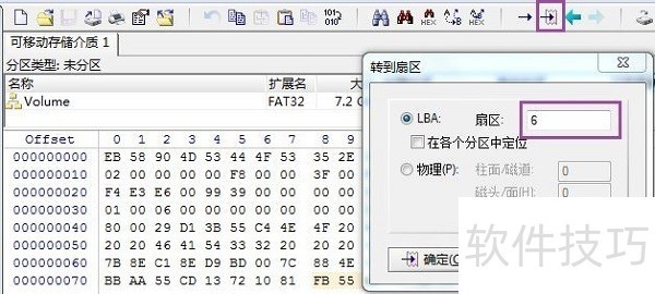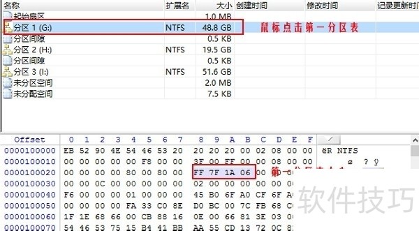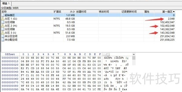 5、 查看分区的起始扇区位置,并填写到原始分区