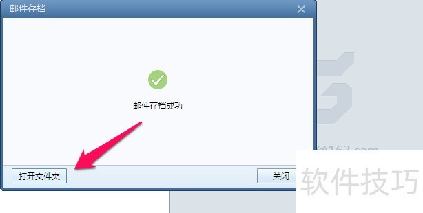 6、 foxmail邮件备份成功以后我们可以看到提示,想要知道foxmail邮件存储位置可以点击打开文件夹。