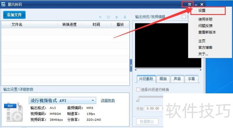 暴风转码:多功能的免费转换软件暴风转码是暴风影音推出的免费专业音视频转换产品,能转换所有流行格式,专注移动设备,速度快且使用简便。这里还有它关闭自动升级、取消自动升级、清空文件列表的操作技巧。