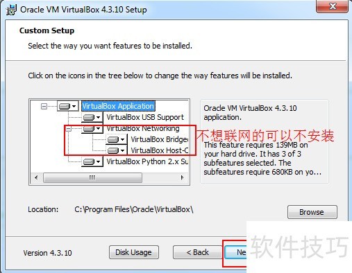 3、 设置好virtualbox虚拟机安装路径后,点击Next进行安装,也可以使用默认的virtualbox虚拟机安装路径。如下图所示。