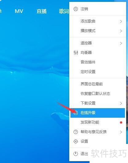 2、 点击“设置”图标,可以看到下拉菜单里有“在线升级”选项,