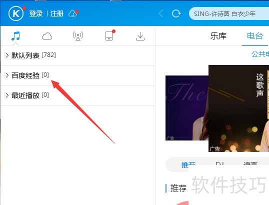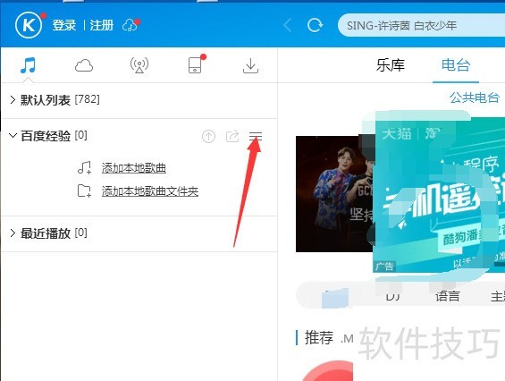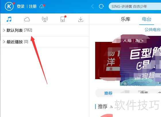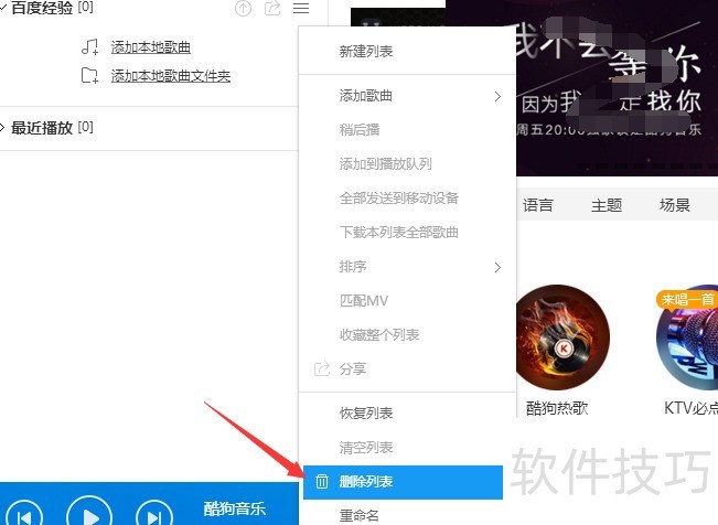 2、 进入到了的酷狗音乐播放器的界面当中,就需要对列表删除。