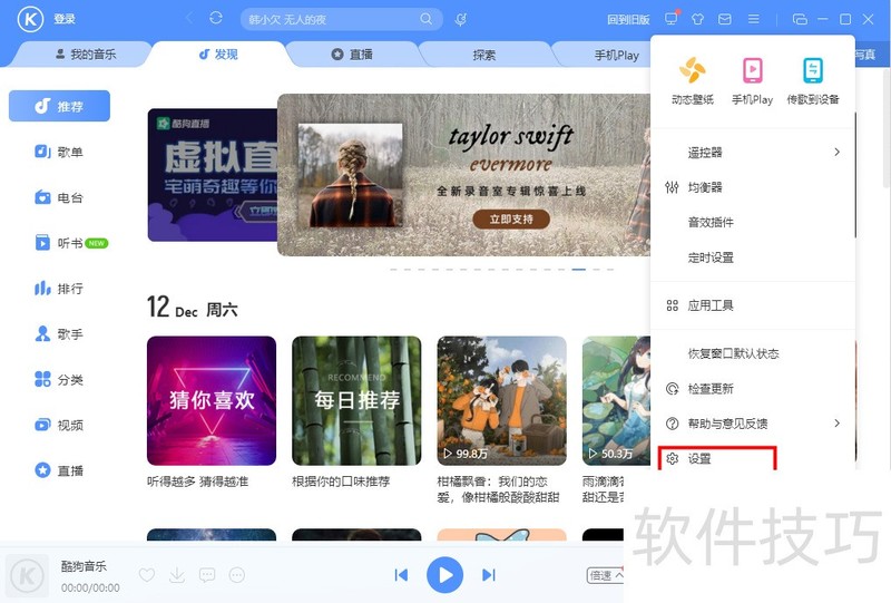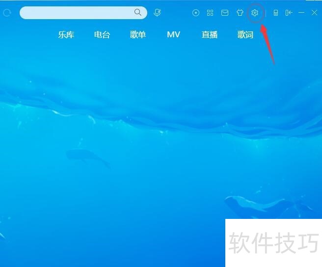 1、 打开酷狗音乐播放器,在主菜单界面的右上方找到“设置”图标,