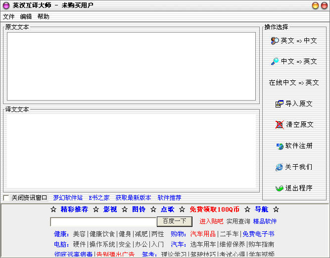 官方软件分类:翻译软件大小:949 KB时间:2006-06-01软件介绍:一款小巧,快速的词典软件。可以进行快速英汉词条互查,还可显示查询词条图片。简明的词义解释,配合生动形 立即下载以上是小编精心挑选的热门免费英文翻译器软件下载推荐,旨在为在座的读者提供帮助。对于有需求的用户,我们强烈建议下载并试用。