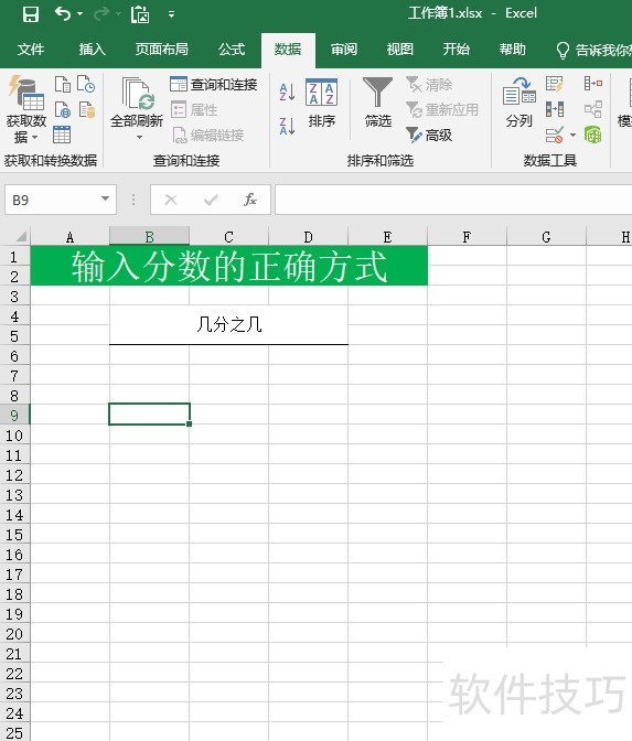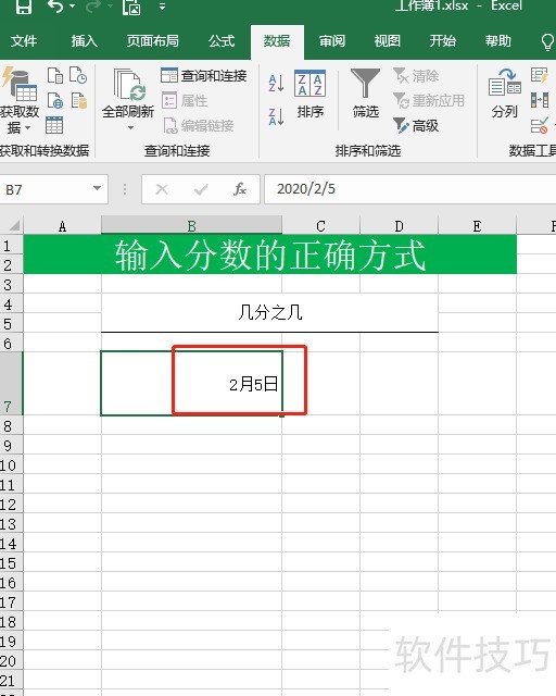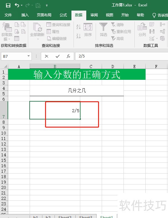 2、 在表格中输入所要书写的分数此处举例“2/5”