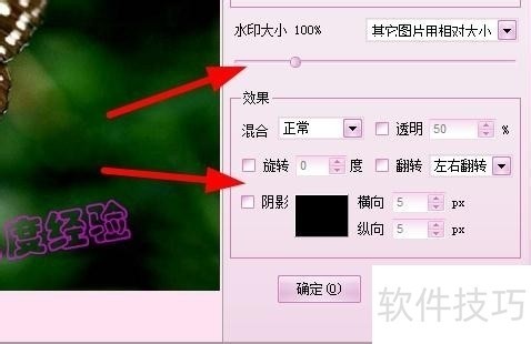 7、 调整水印的大小和效果,点击确定按钮,开始批量加水印~