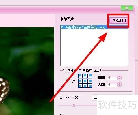 5、 点击选择水印,选择你的图片水印~