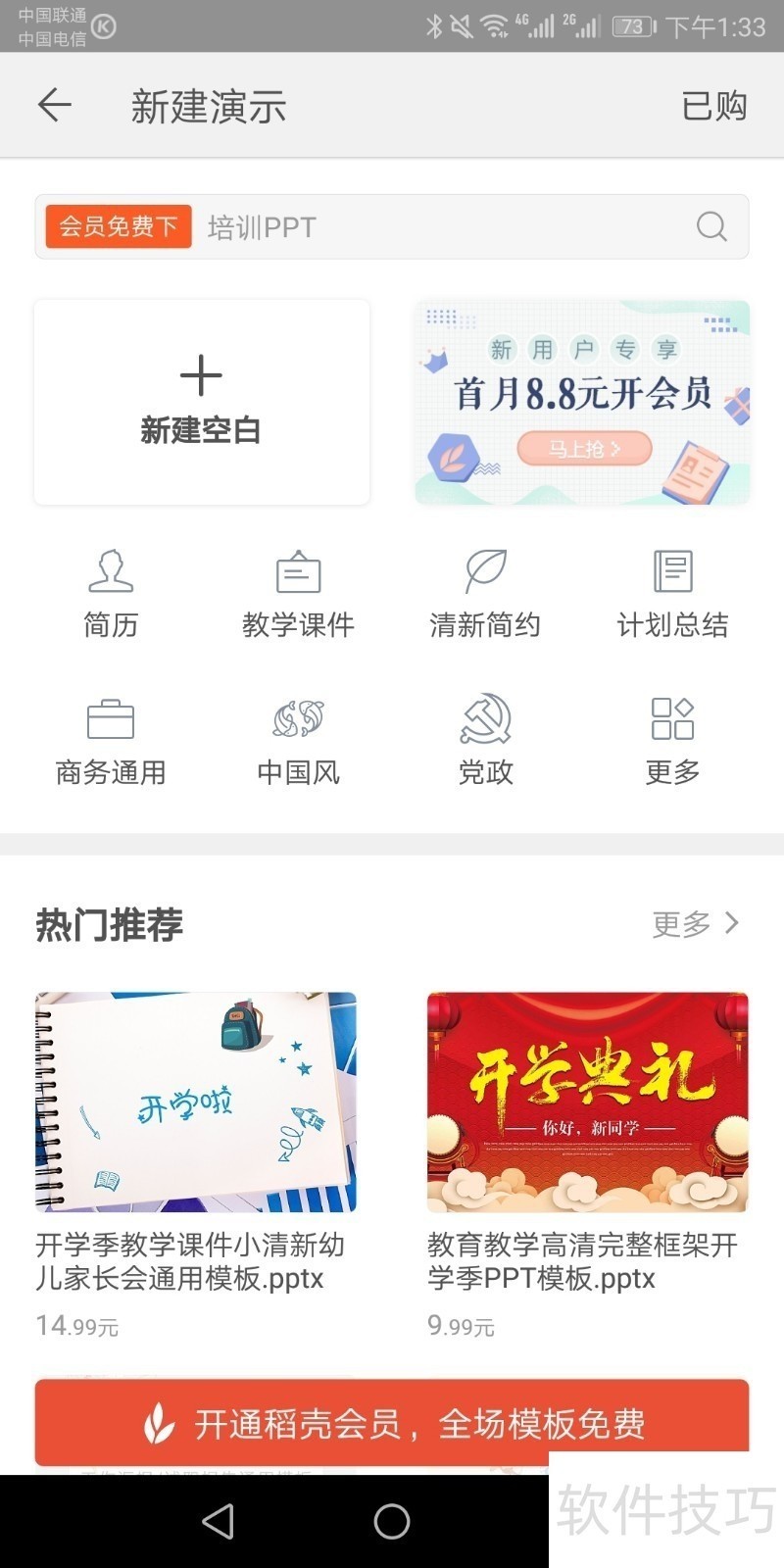 2、 2、点击右下角“+”按钮,选择“新建PPT”。