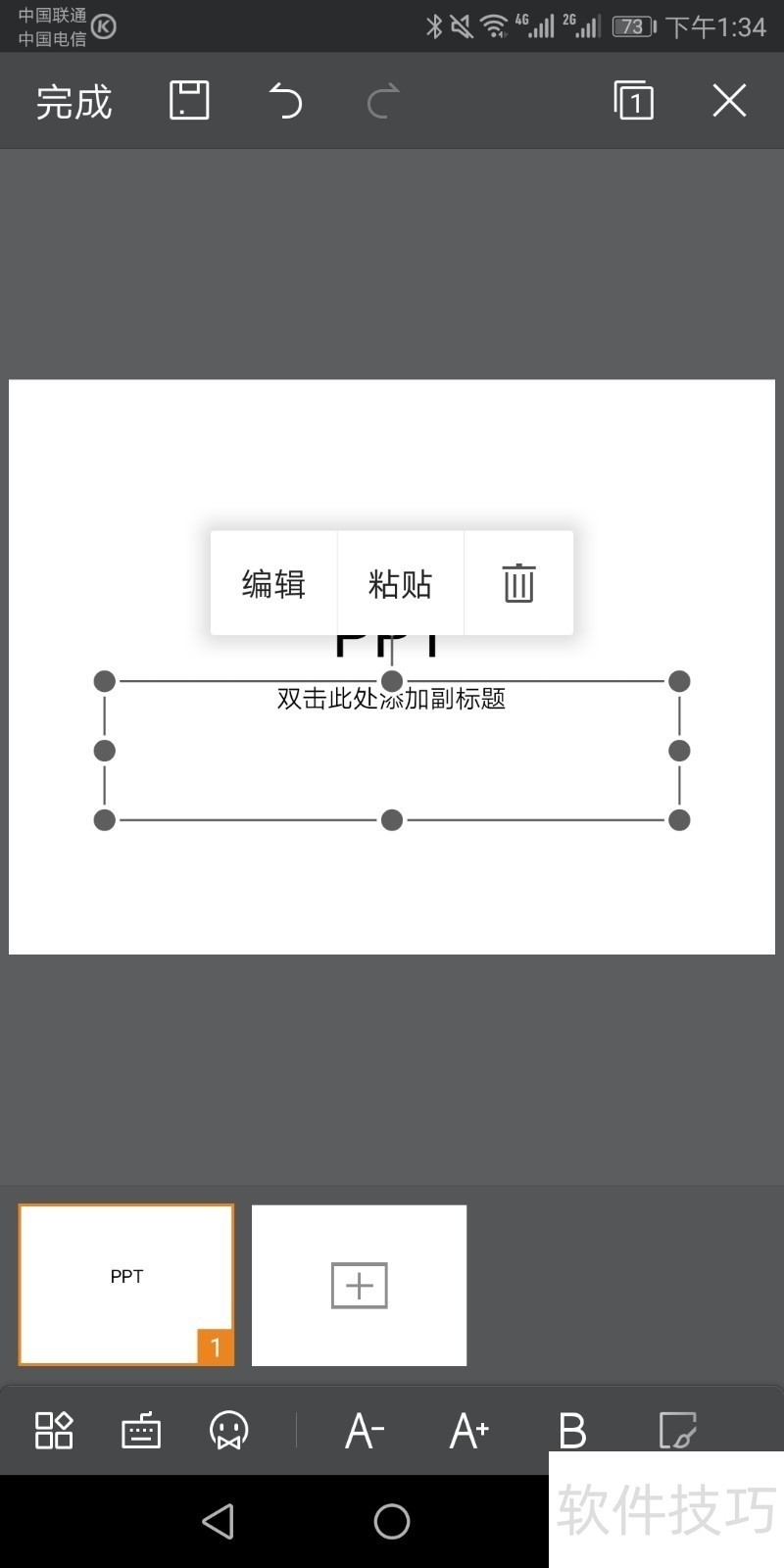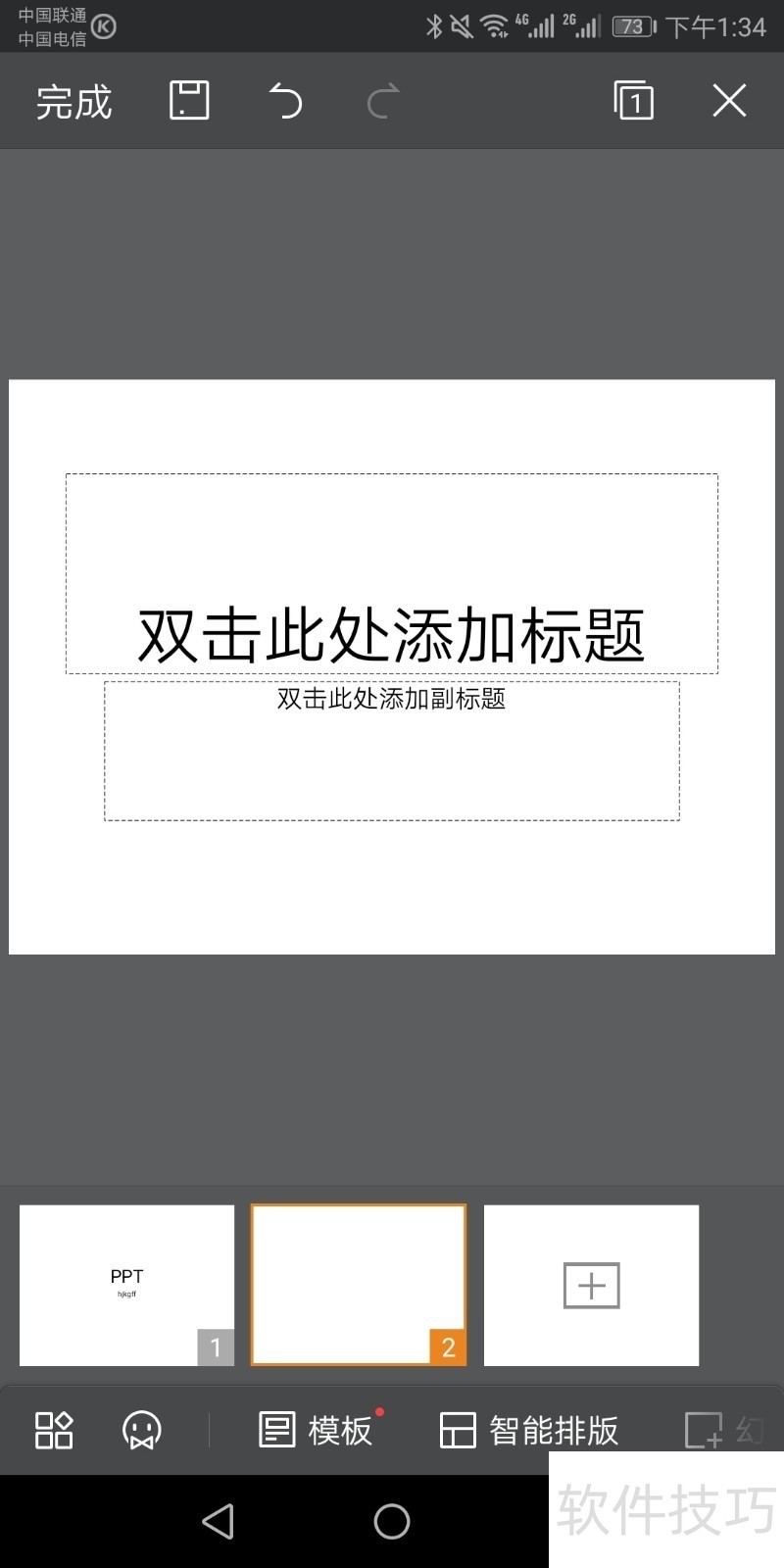 6、 6、编辑完成第一页,点屏幕下方“+”。