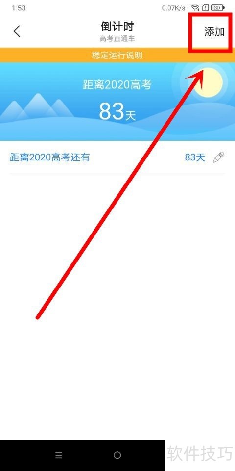 4、 进入到倒计时这个页面中之后,在该页面的右上角位置我们找到添加这个按钮,点击进入。