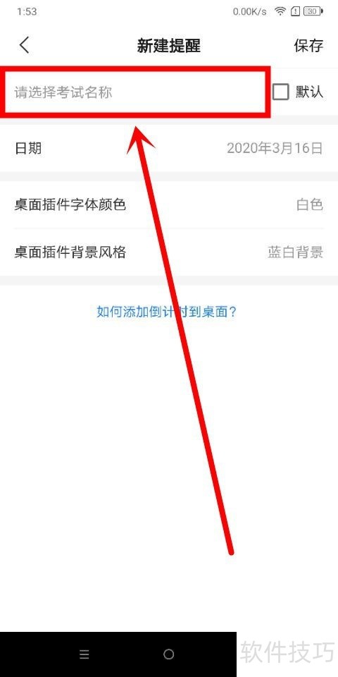 5、 进入到新建提醒这个页面中之后,在该页面中我们找到并填写好考试名称。