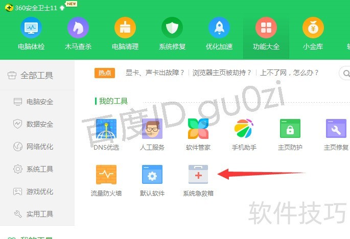 1、 在可以上网的电脑上打开360安全卫士,打开系统急救箱,