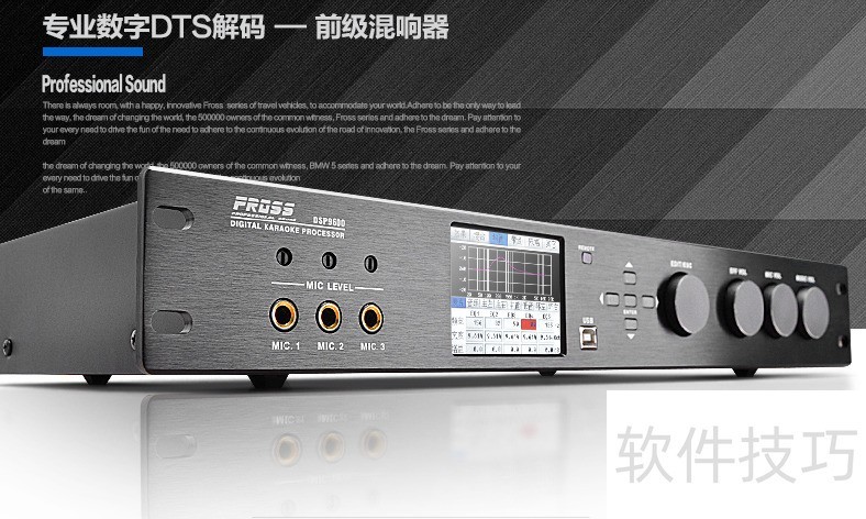 3、 沸斯/FROSS DSP9600 前级效果器一台既能唱、还能兼容家庭影院的效果器进口DSP处理芯片,支持中英文切换,3.2寸彩色大屏,所有参数清新可见