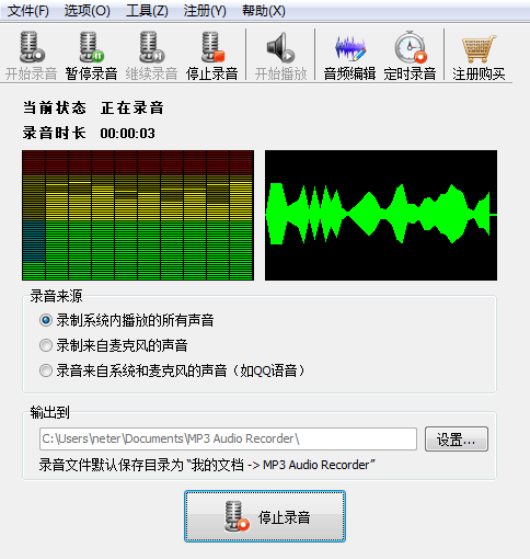 MP3音频录音机是一款功能强大的电脑录音软件,支持将计算机内部或外部声音永久保存到硬盘上。软件采用虚拟声卡技术,无论您的声卡硬件是否支持混音功能,都能让您完美实现内录。此外,软件还提供常用的音频编辑功能、任务计划功能、后台静默方式录音功能、音频文件信息写入功能、热键功能等。界面友好,操作方便,并且兼容微软最新的操作系统XP/Vista/Windows 7/Windows 8/Windows 10。