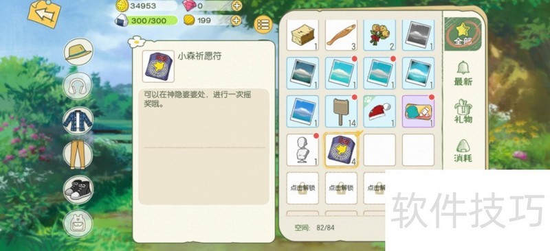 1、 想要摇奖,首先需要获得道具小森祈愿符。