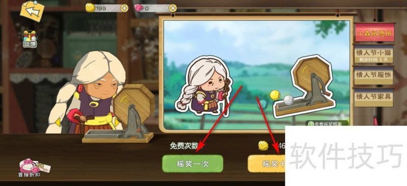 4、 此时会弹出【小森祈愿所】页面,接着点击【摇奖一次】或【摇奖十次】选项。
