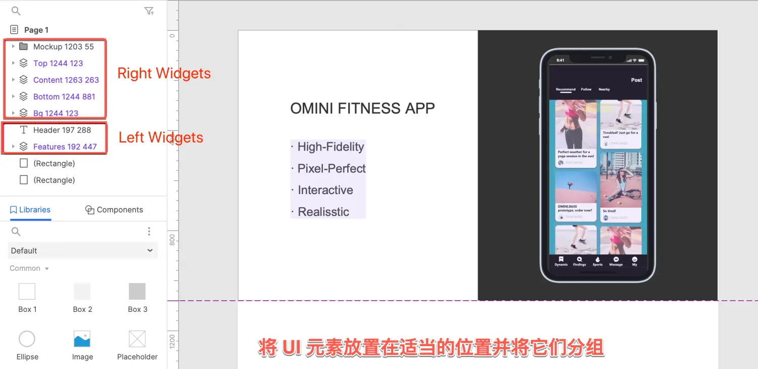 3、将UI元素放置在合适位置并分组,按坐标命名元件。