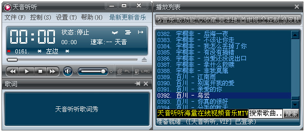 网络播放器,智能播放模式,将网站变成音乐台,主程序和客户端合一,界面酷炫。