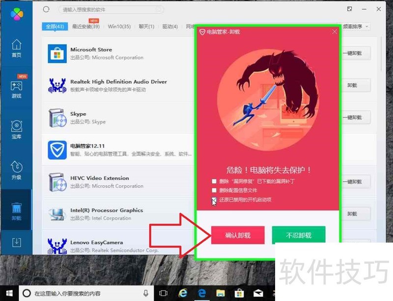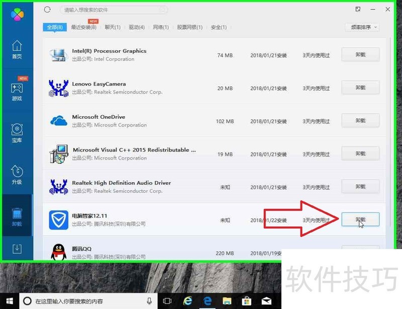 怎样使用腾讯电脑软件管家卸载腾讯电脑管家