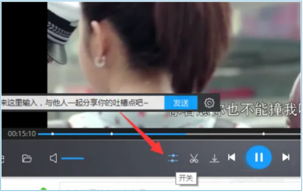4、返回播放器窗口,点击最下方的“开关”按钮,弹出扩展面板。
