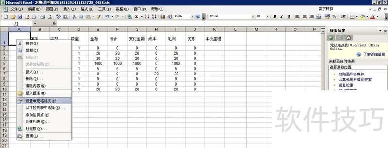 1、 先打开Excel表格,由于作斜线表头的单元格要比其他单元格大,所以首先我们要把表格中第一个单元大小调整好。然后单击选中的单元格,右键单击选择“设置单元格格式”打开