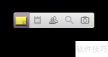 3、 然后会出现一个长方形工具栏,上面标注几项简单功能,第一项就是创建便签。创建便签会整齐排列在电脑桌面,移动也非常方便。