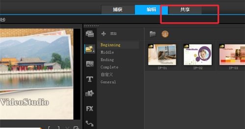 1、打开会声会影x9软件,点击“共享”按钮。
