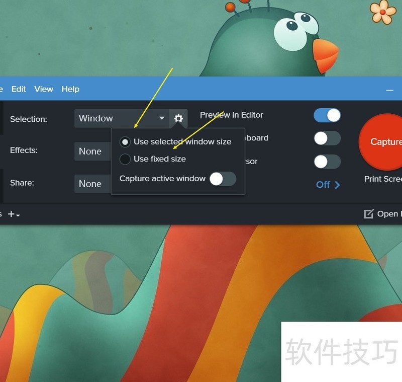 Snagit 2026怎样让非活动窗口透明化?