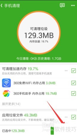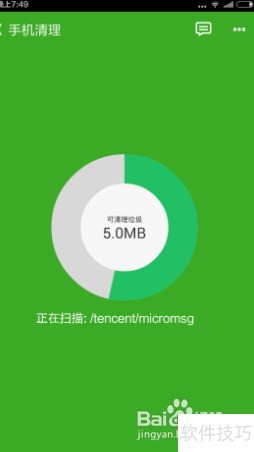 5、 紧接着,在我们点击手机清理这个选项后,这时候我们手机界面中会出现一个正在扫描手机垃圾的界面。