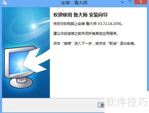 3、 下载完成,安装鲁大师,点击继续