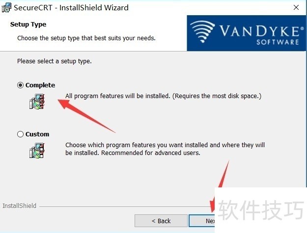 5、 接着选择“Complete”,点击下一步,当然上面两步可以根据自身需求进行选择,如图所示。