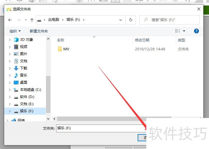 5、 打开选择文件夹对话框中在电脑中找到临时存储的路径后单击选择文件夹按钮