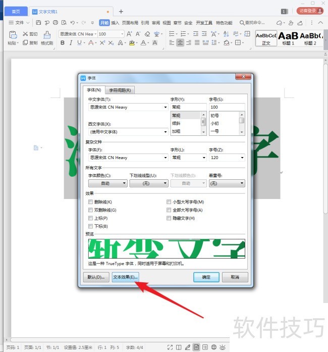 6、 接着将打开【字体】设置窗口,点击其中的【文本效果】。