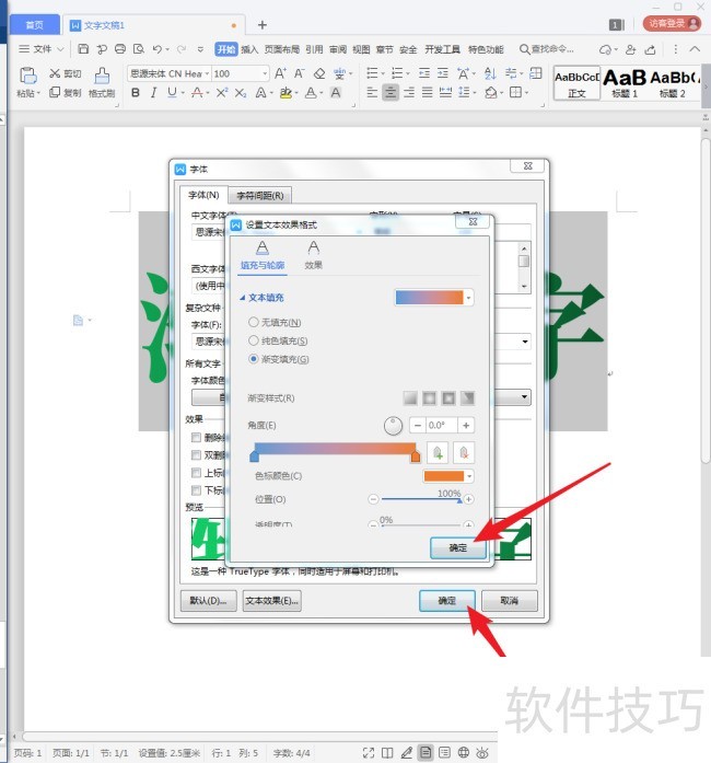 4、 直接点击其中的一种预设渐变色,就能快速得到具有渐变颜色效果的文字。