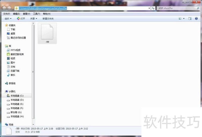 5、 此时,我们发现在C:UsersPublicdjboximagescachezhuoZhe 目录里面创建了一个160M的文件依据是目录中有djbox 音乐盒的英文名称,进去看看