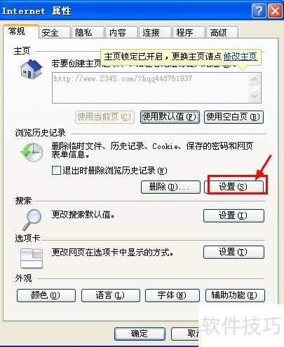 6、 【internet选项】选【常规】点击浏览器记录设置