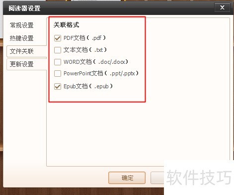 6、 我们在文件关联这里可以选择关联文件,关联成功之后,我们以后打开以下格式,就会被网络阅读器打开