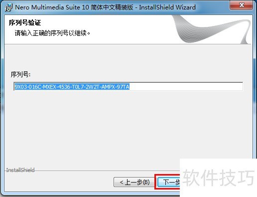 4、 安装程序自动填充序列号的值,直接点击【下一步】按钮;