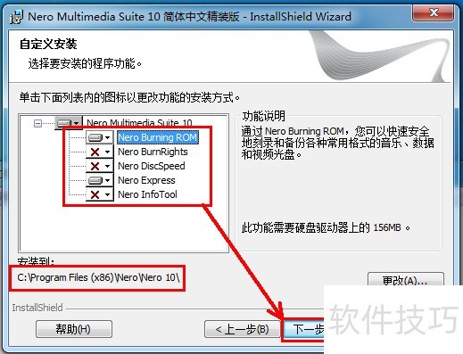 7、 点击安装的功能后,右侧会具体显示该功能模块实现的功能,根据自己的需要可以选择是否安装。选择后点击【下一步】;