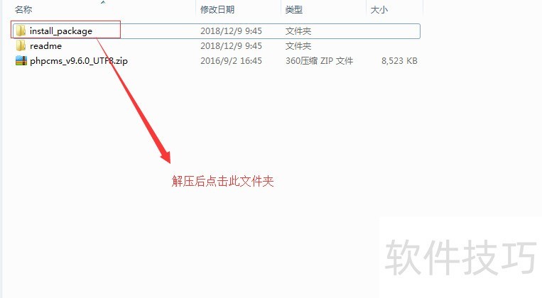 1、 将下载好的phpcms解压到当前文件夹,phpcms的安装文件就在" install_package"文件夹下面,点击进入"install_package"文件夹.