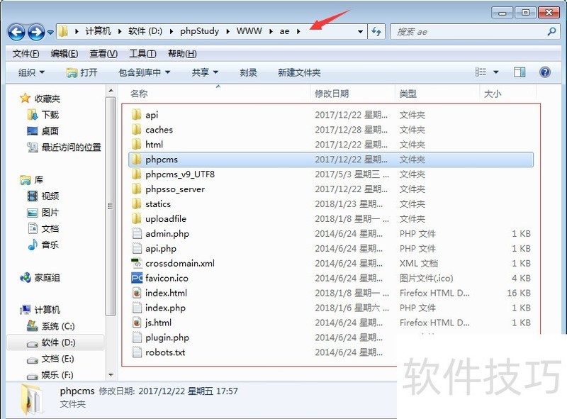2、 第二步:找到phpcms文件夹之后并且打开,看到templates文件夹,这里是存放前台模板代码文件:位置:D:phpStudyWWWaephpcms3第三步:如果你还是一个新手,不妨先参考默认模板是怎么调用面包屑标签。进入templates文件夹,找到phpcms v9内容管理系统默认的模板default文件夹,最后找到前台模板文件:文件位置:D:phpStudyWWWaephpcmsemplatesdefaultcontent4第四步:在模板文件里,找到有显示面包屑的文件,这里我用开发工具打开list.html文件作为例子讲解: