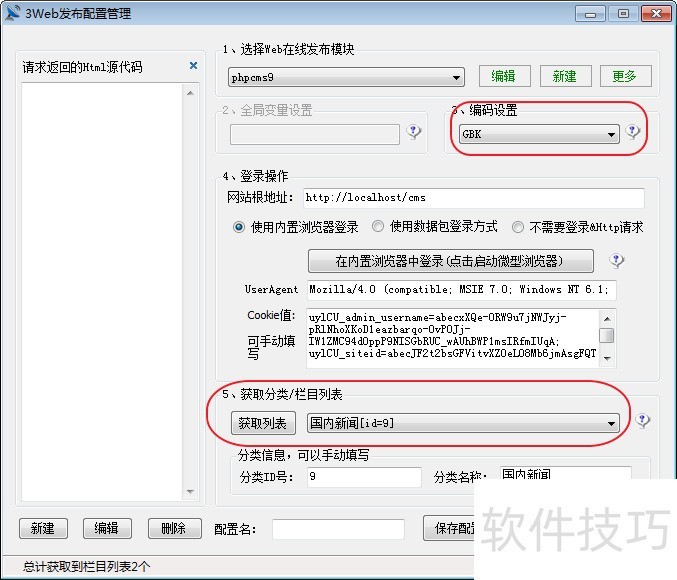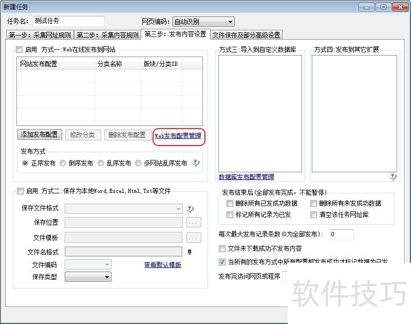 4、 启动文章采集器,先点击【第三步发布内容设置】中的"web发布管理配置"