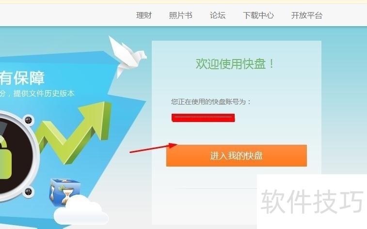 1、 如果你不小心删除了快盘中的文件不管是在本地网盘删除的还是在线进行删除的文档资料,都可以找回来。首先我们在浏览器中输入快盘的地址,或是直接打开,然后输入用户名密码进行登录