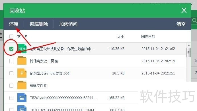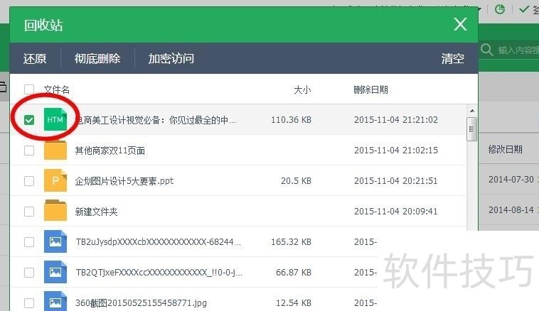 3、 在回收站页面中我们可以看到被你删除的相关文件,即使在本地端被你使用shift+delete进行删除的,这里也可以找到哦