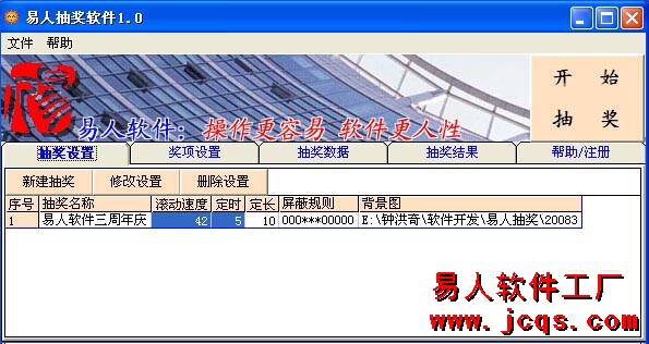 官方软件分类:抽奖软件大小:453 KB时间:2015-06-25软件介绍:好运来是一款性能杰出、功能强大、设置简单灵活的电脑抽奖软件,适用于各类庆典、晚会、 立即下载5.易人抽奖 1.12标准版