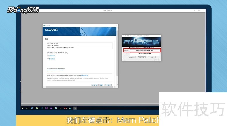 2、 运行AutoCAD2010注册机,把申请号复制,粘贴到注册机的Request中,左键点击“Mem Patch”--“确定”。