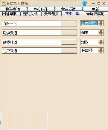官方软件分类:网购工具大小:5.26 MB时间:2016-08-18软件介绍:七彩虹多功能工具箱是一款用于查询网址;快递查询;归属度查询;翻译;自动关机;天气预报;多种搜索工具集 立即下载淘宝秒杀助手 1.19
