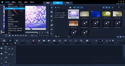 2、选择“打开项目”,导入所需视频素材。